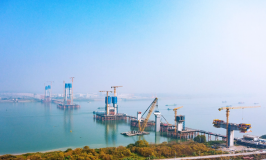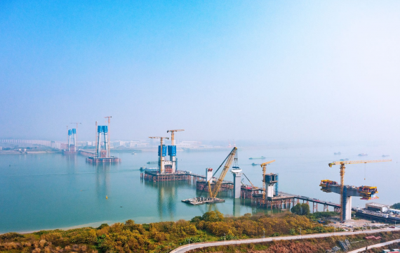 1月19日,珠肇高铁项目控制性工程西江特大桥三塔组合梁斜拉桥建设现场再传捷报,重达